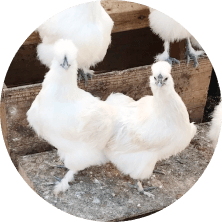 皮膚・肉・骨が暗紫色をしていることから「烏骨」の名が付いているニワトリ。 栄養学的に優れているとされ人気が高い。